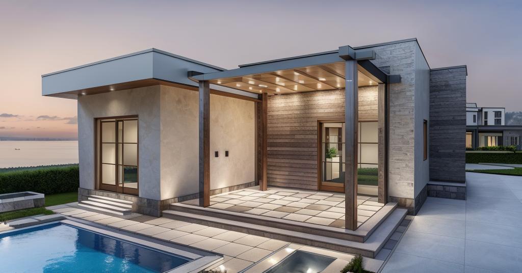The result is a modern house with four spacious suites, complemented by a detached guest house that maintains a harmonious design spirit while incorporating distinct elements and materials.