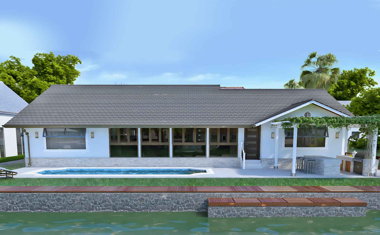 Our main focus is to incorporate the significance of the water feature into the design of the building, emphasizing its importance and allowing the client to fully enjoy the surrounding environment and nature.